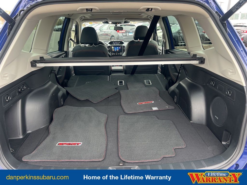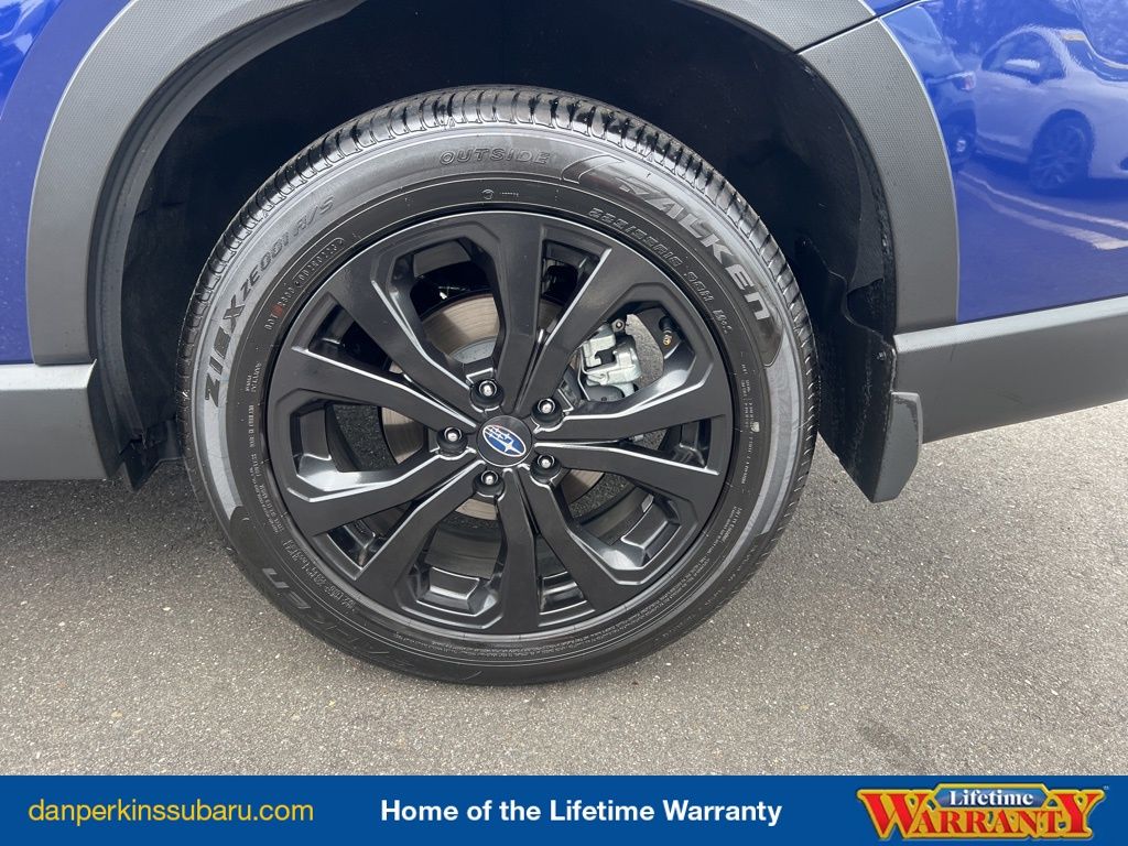 Step inside and you'll be surrounded by premium amenities that elevate your driving experience. The Harman Kardon 9-speaker audio system provides a concert-hall-like listening experience, while the Subaru Starlink 8.0" Multimedia Plus system offers seamless smartphone integration through Apple CarPlay and Android Auto. The power rear gate with automatic close and height memory adds convenience, and the sport cloth upholstery and 18-inch black-finish alloy wheels lend a stylish, athletic flair.