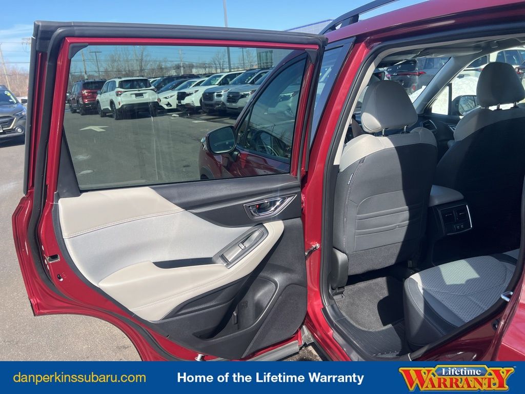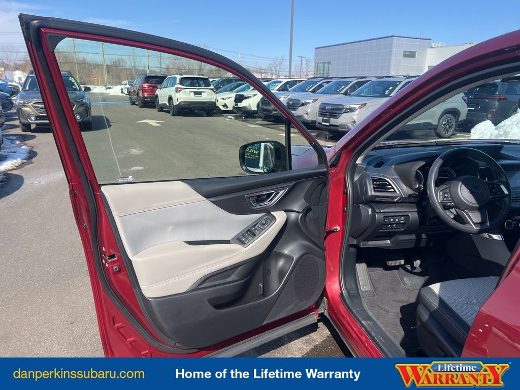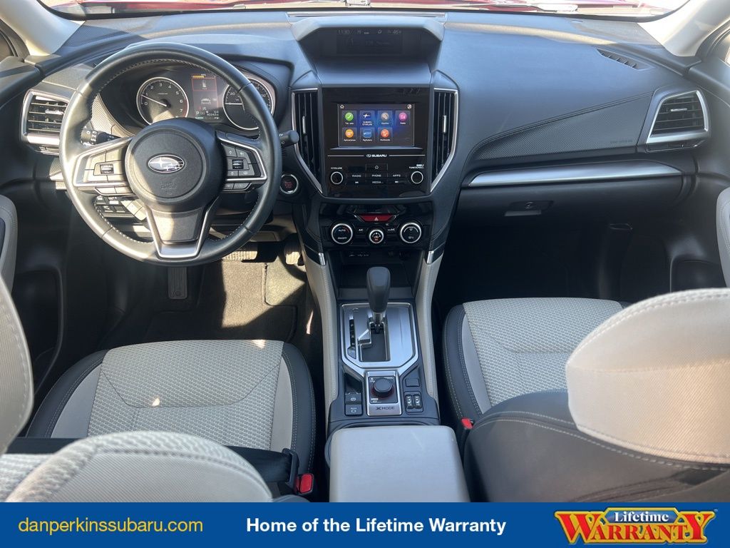 Indulge in the comfort of the Forester Premium's heated front seats, power driver's seat, and panoramic power moonroof. Enjoy the convenience of the dual USB charge ports, telescoping and tilt steering wheel, and the driver's seatback divided pocket.